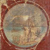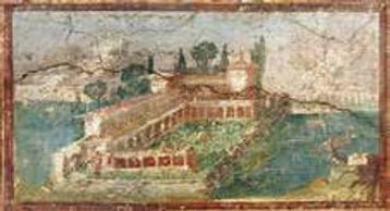 This villa possess a commanding view with an open peristyle garden facing the water. Whether a real or fictional villa, it is a remarkable fresco.