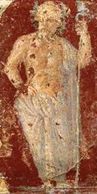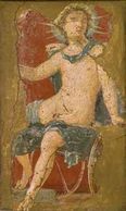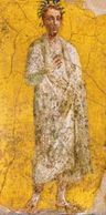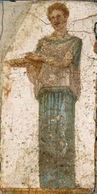 This male figure is clad in all white garments and a crown of plants. From the Villa San Marco.
