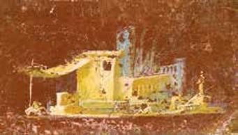 The architectural forms in this landscape are uniquely informative and well illustrated in this fresco discovered in the Villa Arianna.