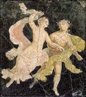 A couple dances or frolics to unknown sentiments, a stark reminder of the passion that filled the lives of the ancients.