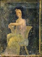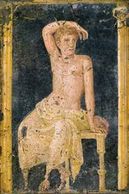The youth depicted here sits seductively facing the viewer of the fresco. From the Villa Arianna.